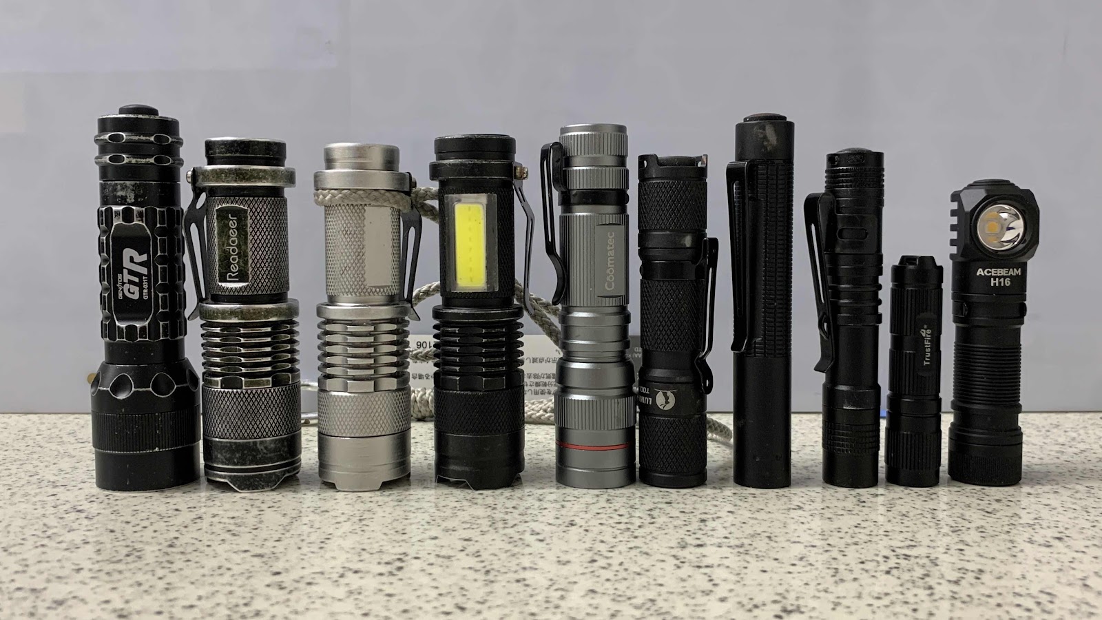 いまは右から5本目の LUMINTOP 650ルーメン(単三)をズボンのポケットに入れている。